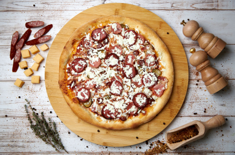 Пицца с грибами и копчеными колбасами